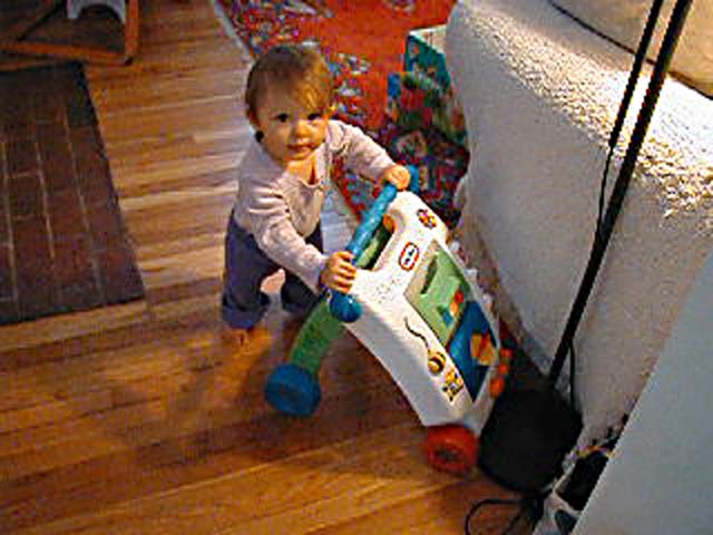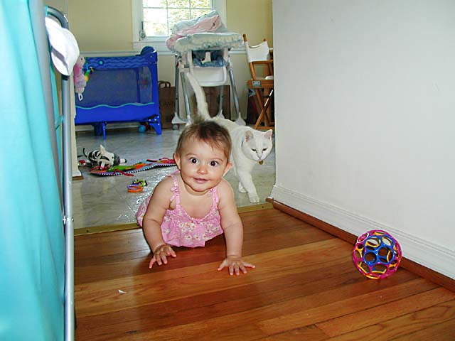 Sophie thwarted by the couch (frame from movie file) (October 2005)