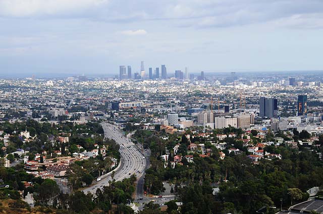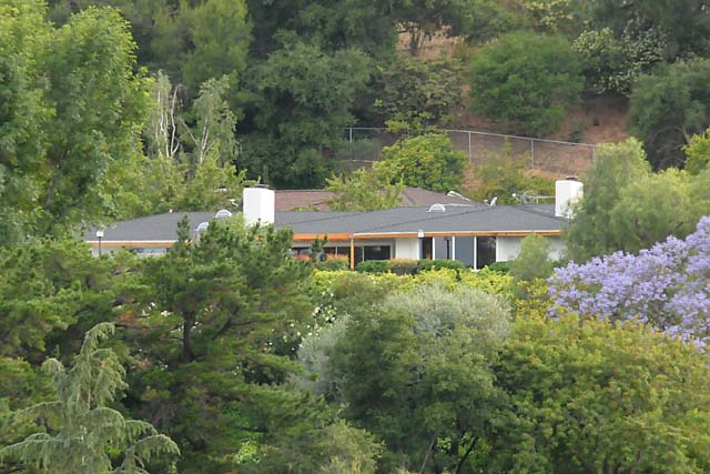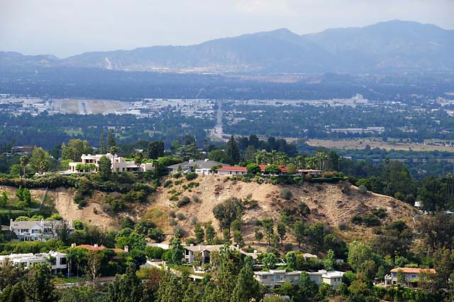 Following a delightful lunch and piano music with the ladies, I rode Mulholland Drive from Encino to the Cahuenga Pass. Here's a shot of Encino from Mulholland. My home was on the other side of the hill you see in the middle of the picture. You can see the Van Nuys Airport in the mid to upper left, the runway is pointing away from the camera. Above and to the right of the runway, in almost an S shaped curve, you can see the aqueduct that delivers water to LA through the Newhall Pass.