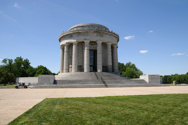 I got to Vincennes first, it was a much shorter distance for me, and I managed to get some pictures before Carolyn arrived. Here's the George Rogers Clark Memorial.