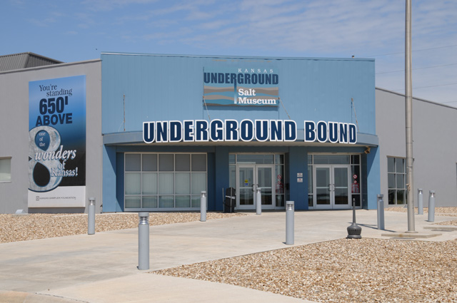 I stopped in Hutchinson, Kansas to retrieve some memories from ten years ago. Funny how memory can fade after such a short time. Ten years ago when I worked for Sony Pictures, I went to Hutchinson on a business trip with some other Sony Pictures people. We were looking at sites where Sony Pictures stores film assets. Believe it or not, one of the places is Hutchinson. Why would they store film there? There is a salt mine 650 feet deep, and the climate in the mine is extremely consistent and favorable for film storage. I remembered from ten years ago that the salt mine was under US50. That was noted by me at the time because of my early life history with US50. Anyway, I wanted to stop at the salt mine and figure out where I had been. I had some trouble figuring out just where the elevator was that took us down to the mine. It had to be pointed out to me. I stopped first at a salt mine museum, thinking it was there ten years ago, but it wasn't. It is only five years old. That's why I couldn't find the elevator, it was about a quarter mile away on the other side of a railroad track, but I rode a mile or two to get there. I could have walked more quickly. Here's a picture of the museum.