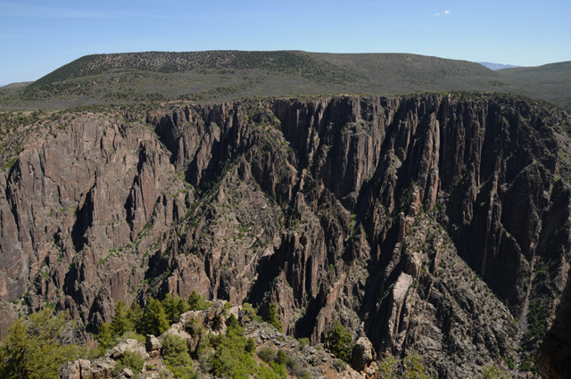 Busy day today. Rode 389 miles. Got up before 7:00, had breakfast and was off. I wanted to see the Black Canyon, Colorado's own Grand Canyon. The canyon was formed by the Gunnison River. You can do the south rim or the north rim. The north rim takes longer, but I am told it is more impressive. I did the south rim. This is one of the first views I had after entering the National Park.