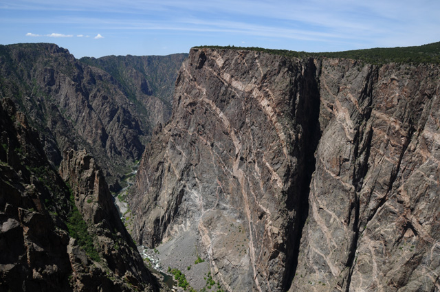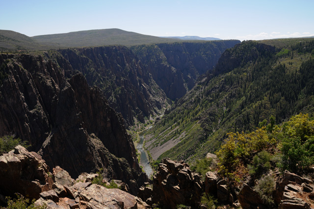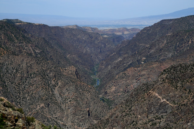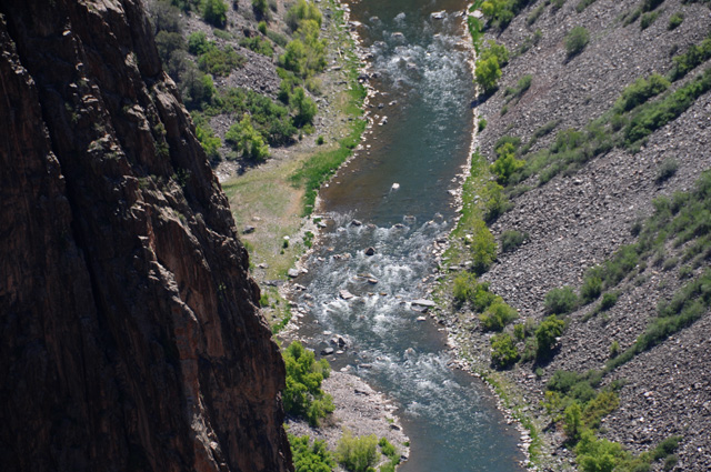 Looking down into the canyon at the Gunnison River with a telephoto lens.