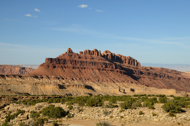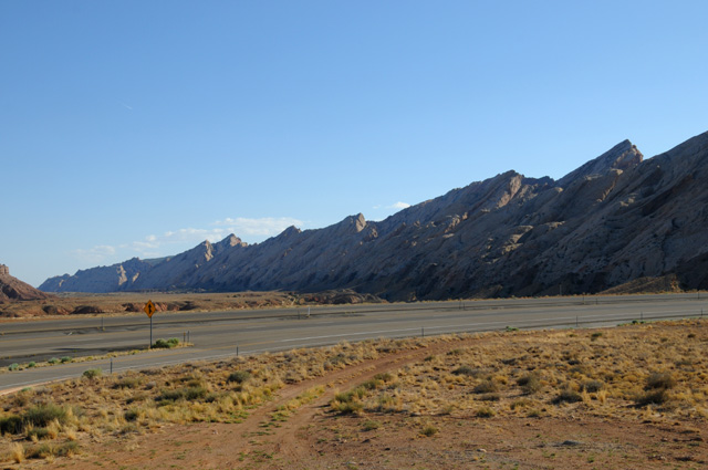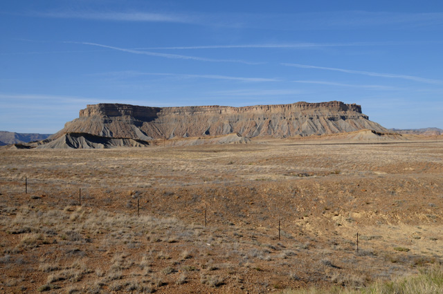The terrain really changed about Grand Junction. It went from being high altitude with trees to a desert look. I saw this mesa fairly soon and had to stop on the Interstate (on the shoulder, of course) to get the picture.