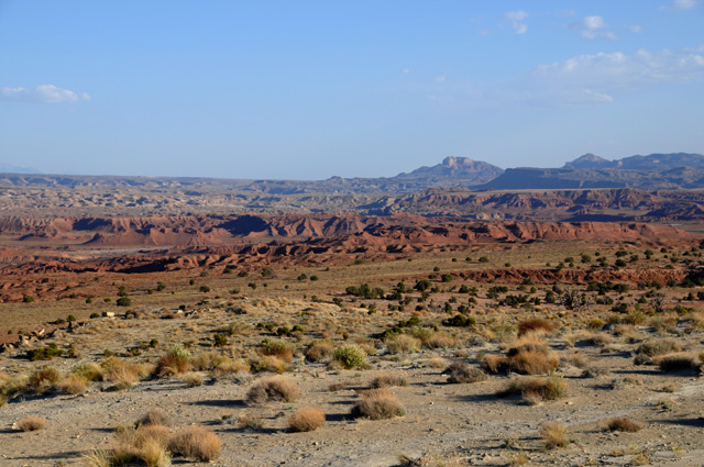 Utah has beautiful scenery. Lots of red rocks which I love. I went through an area called the San Rafael Reef where the earth's crust was pushed up exposing a different type of rock. This picture shows the color, but doesn't fully show the roughness.