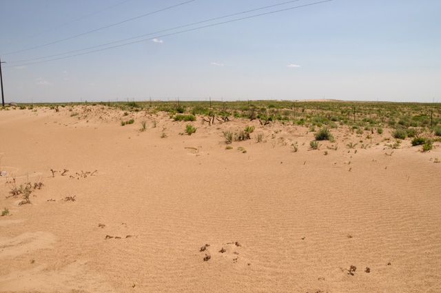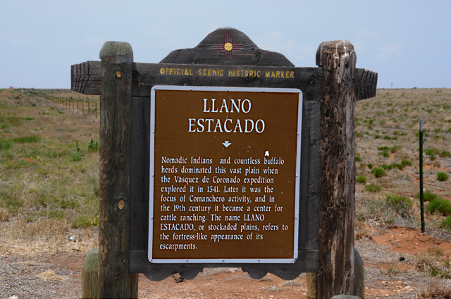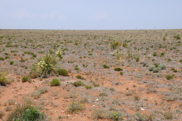 I paid particular attention to this sign because I have read about the Llano Estacado. Hanna gave me a book a few months ago titled "Empire of the Summer Moon: Quanah Parker and the Rise and Fall of the Comanches, the Most Powerful Indian Tribe in American History", a biography by S.C. Gwynne, published by Simon & Schuster. You can read the book. Or you can watch the John Wayne movie "The Searchers". Quanah Parker was the greatest Commanch chief, and the last during the American Indian wars. He was the son of a Commanche chief and a kidnapped pioneer woman. Anyway, Quanah spent a lot of time on the Llano Estacado. Here's what the land looks like behind the sign.