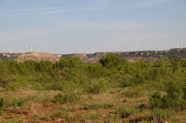 Adding those numbers would be 216. Sure seemed like more than that to me. It went on for miles. Maybe I saw more than one farm. The Sweetwater Wind Farm is in Nolan County. I note that there are eight wind farms that are completely or partially in Nolan County with 2,365 windmills. So, maybe I did see more than one farm.