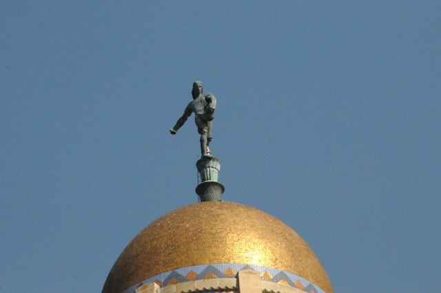 Here's a telephoto shot of the statue on top, it is "The Sower".