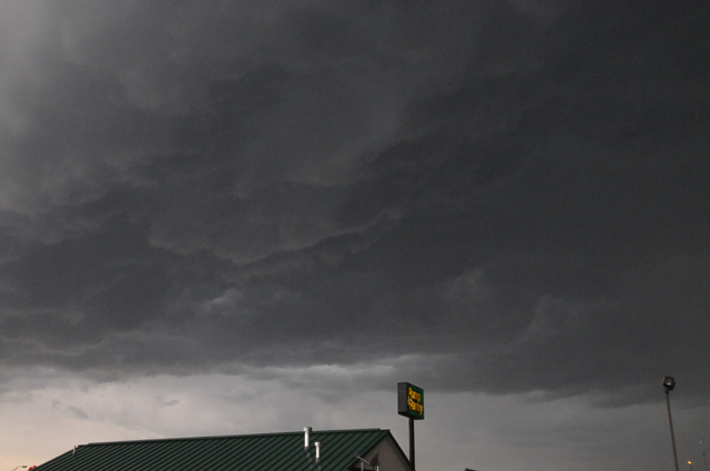 As I headed west, the sky behind me was dark and ahead was bright. I stopped on an exit ramp to get this picture looking back. That's where I had just been.