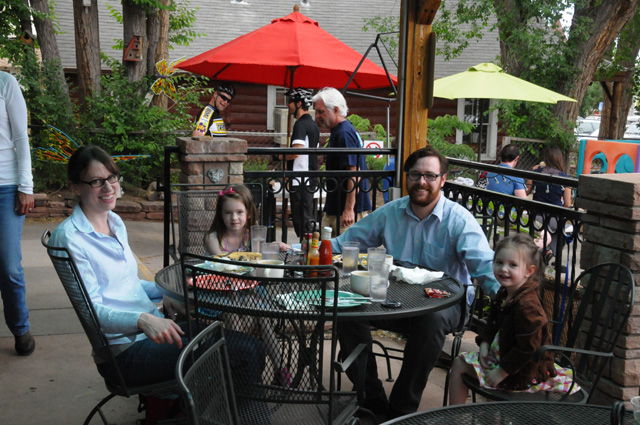 We had breakfast at the Stone Cup in Lyons, north and west of Denver. We sat next to a fiddler and banjo picker. We enjoyed their music very much.