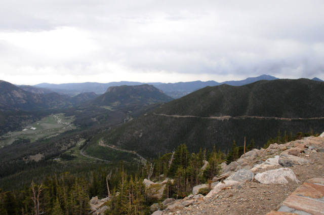 Now I am up pretty high in the Rockies, but still not above the tree line. You can see all the switchbacks to get up here.