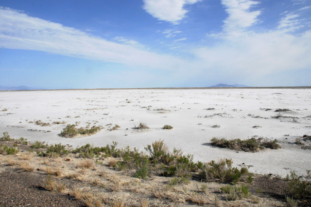 Let me take it one piece at a time. I left Salt Lake City early, knowing I had a long day ahead of me. I wanted to reach Carson City, NV, 555 miles away, because I have an appointment to have the bike serviced tomorrow by Carson City Harley-Davidson. I stopped to take a picture of the view, which was a lot of salt.