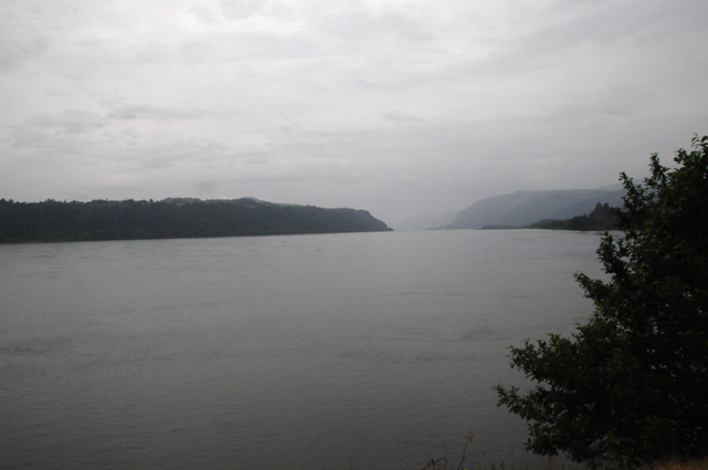 I am almost back to Portland now. I saw this "vista" on my way to the Gorge, but it is only for the other direction of travel. So, I am looking back into the Gorge. You can see just how dreary a day it was.