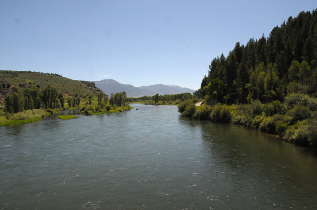 This is the Snake River. I saw it a number of times today. This was in Idaho. It runs through Jackson Hole, through Yellowstone, and it empties into the Columbia River. It is 1,078 miles long!