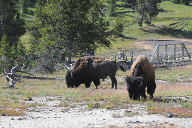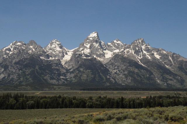 Then I headed north to Yellowstone, I wanted to see Old Faithful again. I was not satisfied with the pictures I took in 2000, the sky was filled with clouds and it was hard to distinguish the geyser from the clouds. I knew that would not be the case today with the bright blue sky. I ran along the Grand Tetons first, and found them as amazing as ever. Here are some pictures I took today.