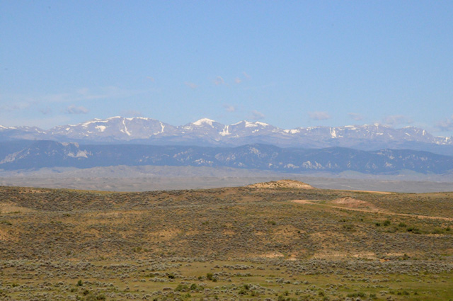 Maybe I should start over. About an hour after I left Sheridan, I looked back and saw snow capped mountains, I believe it was the Bighorn Mountains. I said to myself that this is probably the last snow capped mountains I will see on this ride, so maybe I should take a picture to remember it.