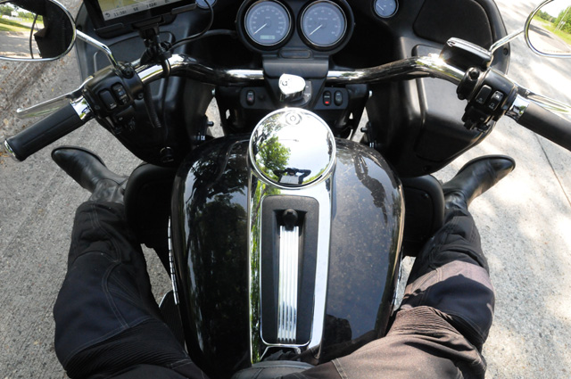 See how I can just lay my legs on the pegs. My boots look kind of small here, don't they. My feet are not that petite. The lens is a wide angle and it makes things looks smaller as they get farther away from the lens.