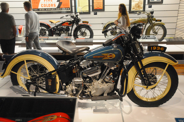 Here are both sides of a 1936 Harley Knucklehead, and a picture of the motor. In many ways, this was a modern bike, or maybe I should say that today's Harleys try to capture the feeling of this bike.