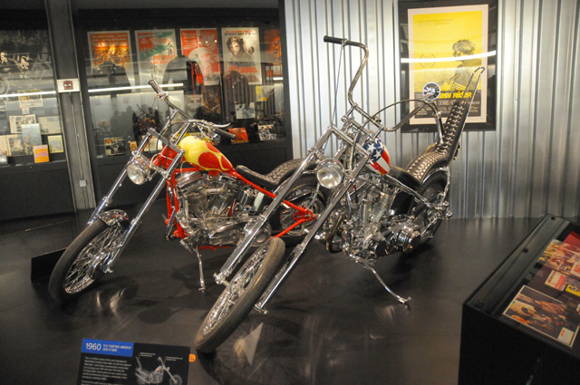 Reproductions of the Billy Bike and Captain America from "Easy Rider", a Columbia Pictures film.