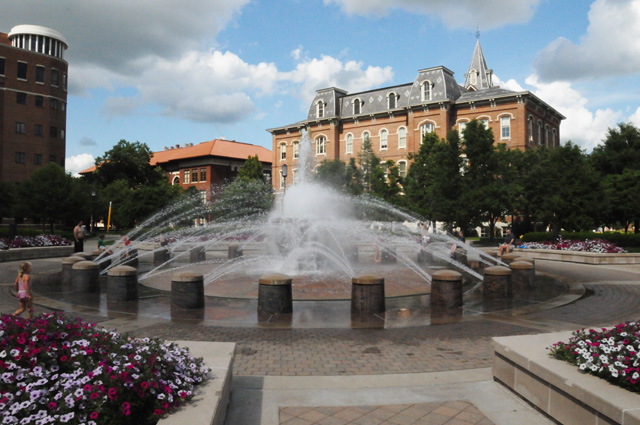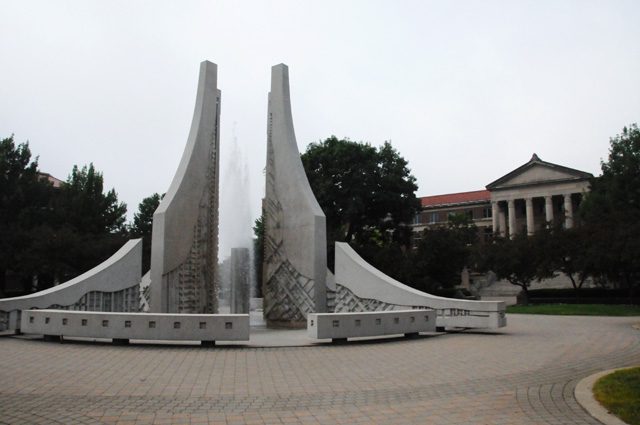 The fountain in front of the Hovde Building when I was a student is the fountain I showed you yesterday that I said had been moved. Today the fountain was running, here's what it looks like with water. Much better.