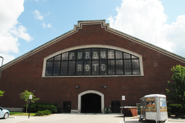Purdue was a land-grant college. When I was a student, ROTC was required at land-grant colleges. I was in Air Force ROTC. This picture is the Armory. We often marched around inside the Armory.