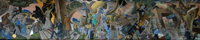 To see the mural in higher resolution, click on the picture. The mural was done by Eugene Francis Savage in 1961. It is titled "Spirit of the Land Grant College". The mural was a gift of Mr & Mrs R B Stewart and Mr & Mrs W Scholer. R B Stewart is the person for whom the Stewart Building is named. I knew him. He was an executive at Purdue, and had become a member of my fraternity when he was a student.