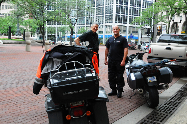 Today was another rainy day. I left Purdue, and within ten minutes it was raining. I saw sprinkles on the bike before leaving. I was in two different showers on the way to Indianapolis, with very light rain between the showers. I was in Indianapolis for about two hours, and that was dry.