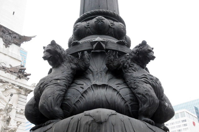 Dean pointed out to me these bears who work so very hard to keep the lamps up that surround the Soldiers and Sailors Monument.