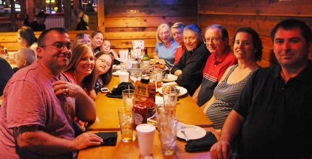 The group above starting at left front is Kelly, Karen, Riley, Bonnie, Jessica, and Olivia. On the right, starting from the rear is Carolyn, Larry, me, Johnny, Amanda, and Justin.